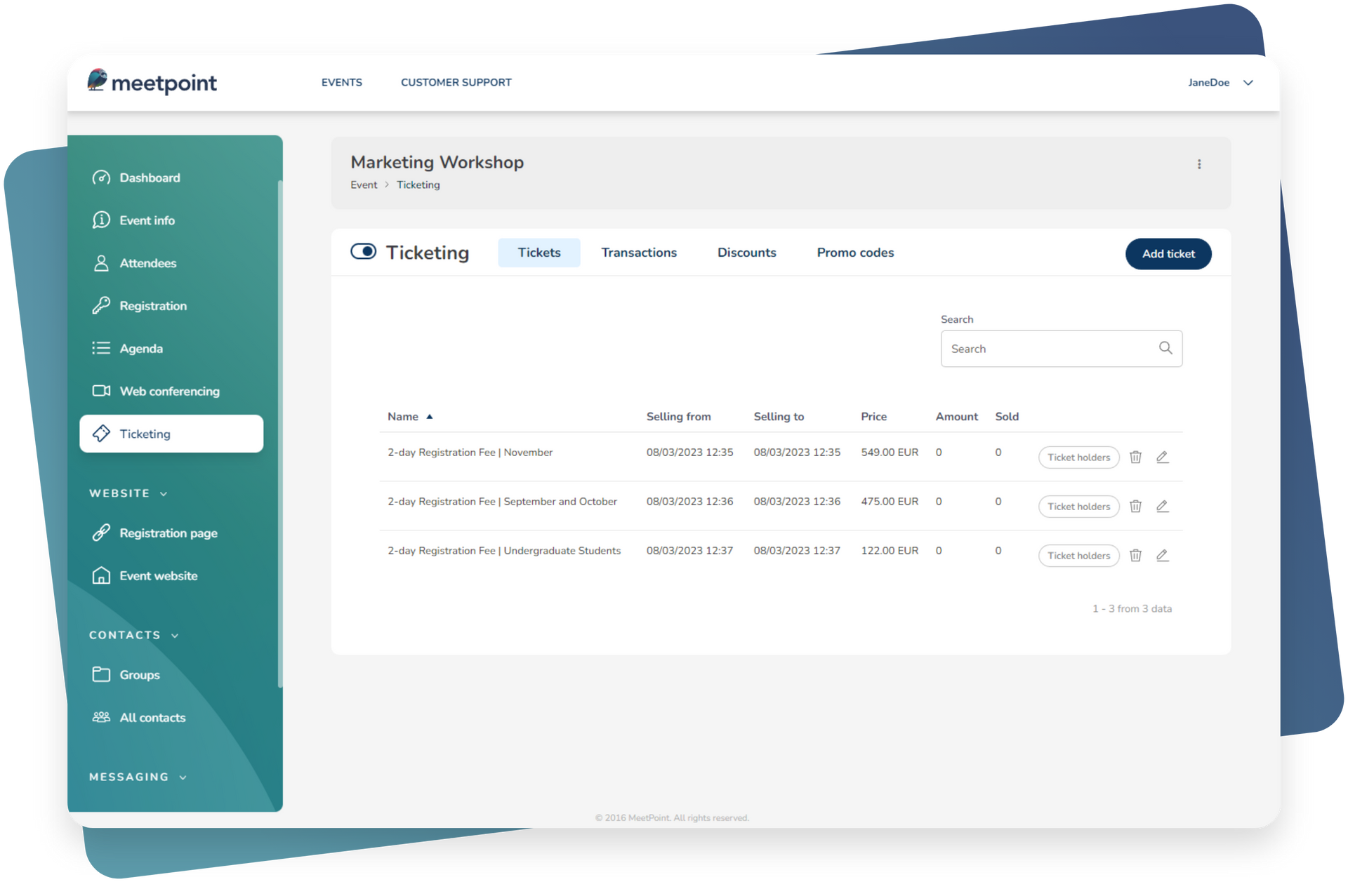Free or paid events. MeetPoint makes it simple to customize multiple ticket types for your event.