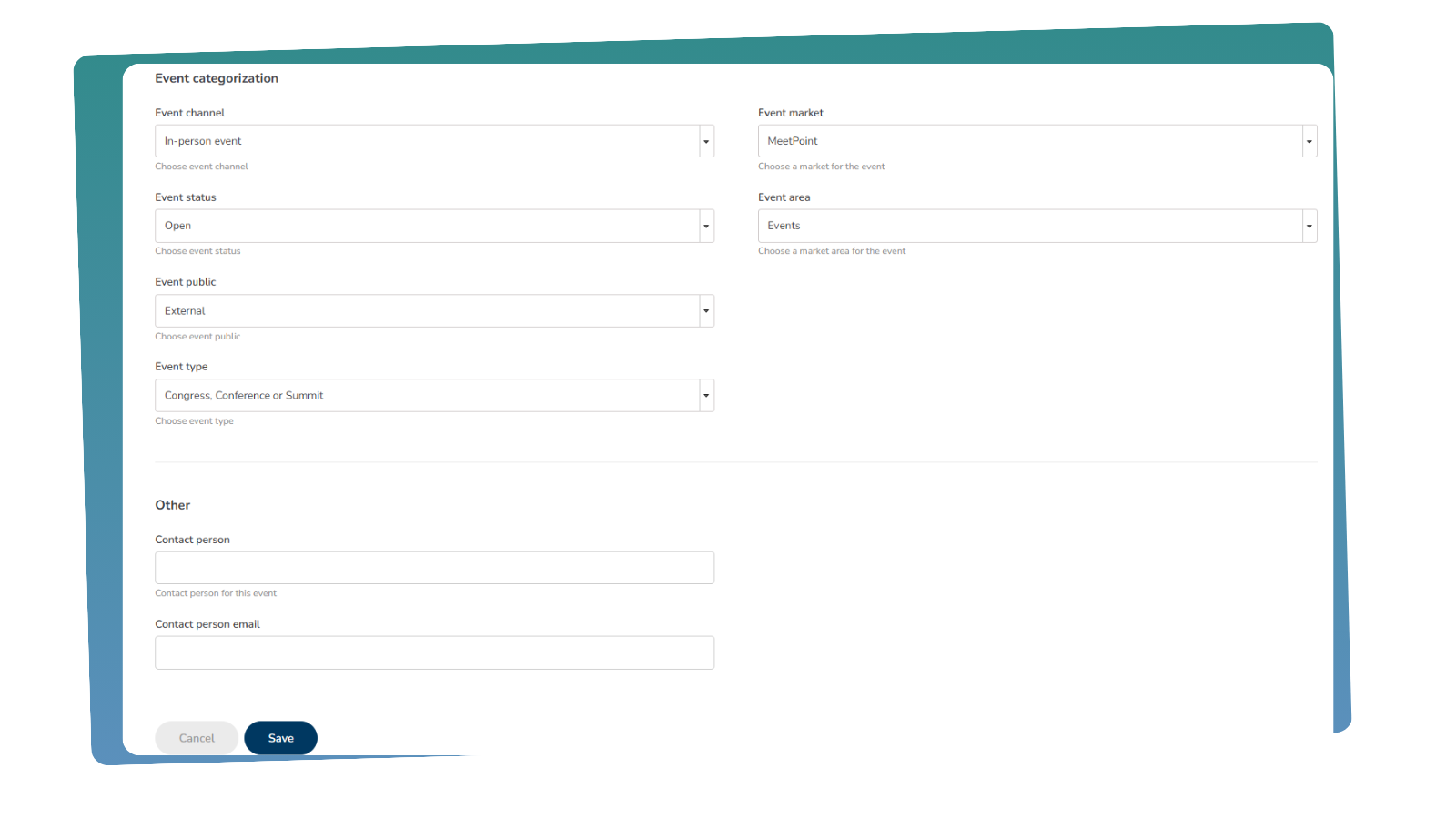 Ti podatki so ključni za tiste, ki upravljajo dogodek v MeetPointu, saj je to lahko več oseb na enkrat - kontaktna oseba je tista, ki kot glavna upravlja dogodek v MeetPointu.